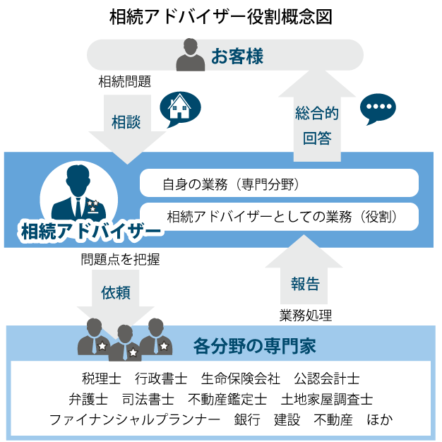 相続アドバイザーによる専門家のアドバイスを、積極的に行わせて頂きます。